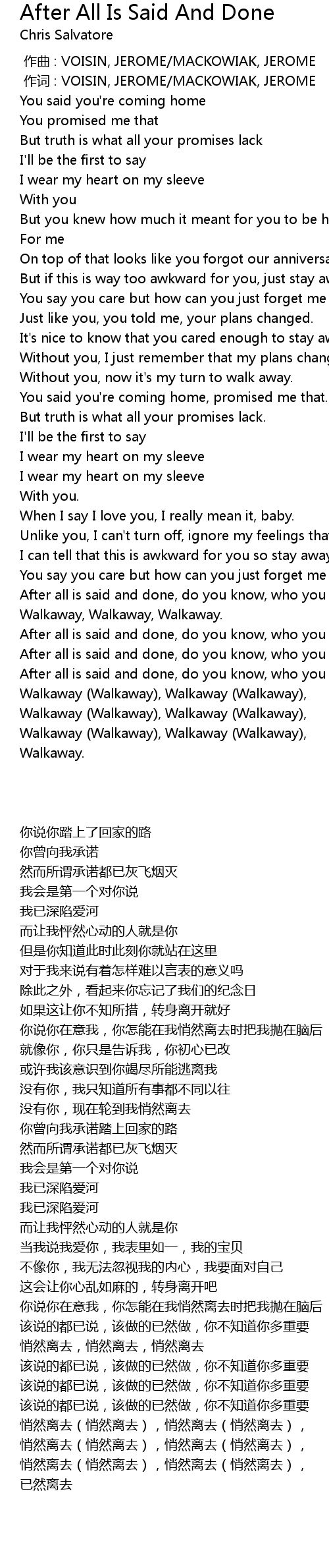 | [03:02.291] | You say you care but how can you just forget me when I walkaway. |