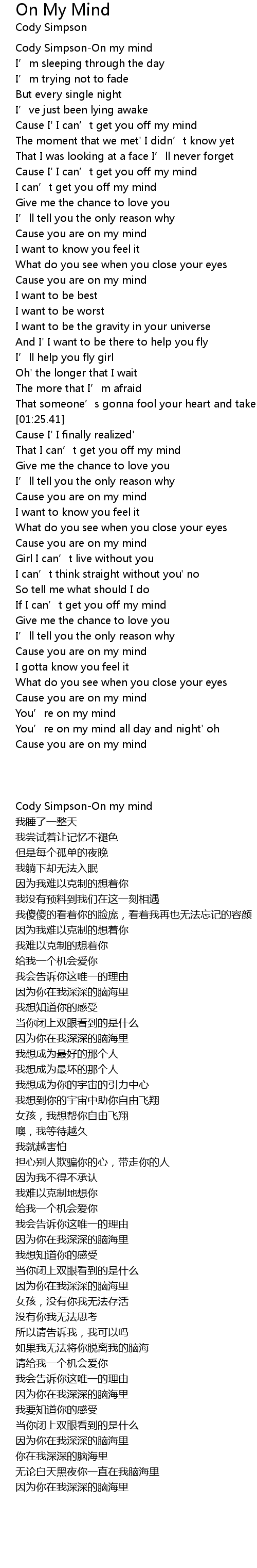 | [00:25.17] | Cause I' I can' t get you off my mind |