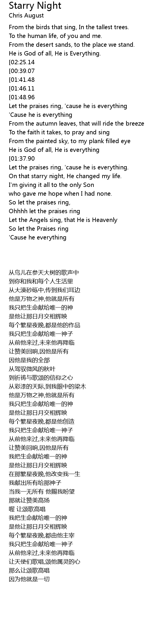 [02:31.71] On that starry night, He changed my life.