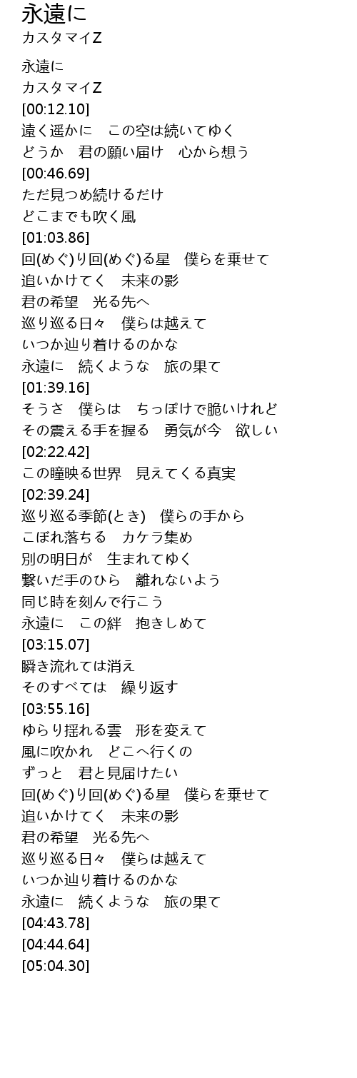 | [04:34.72] | 永遠に 続くような 旅の果て |