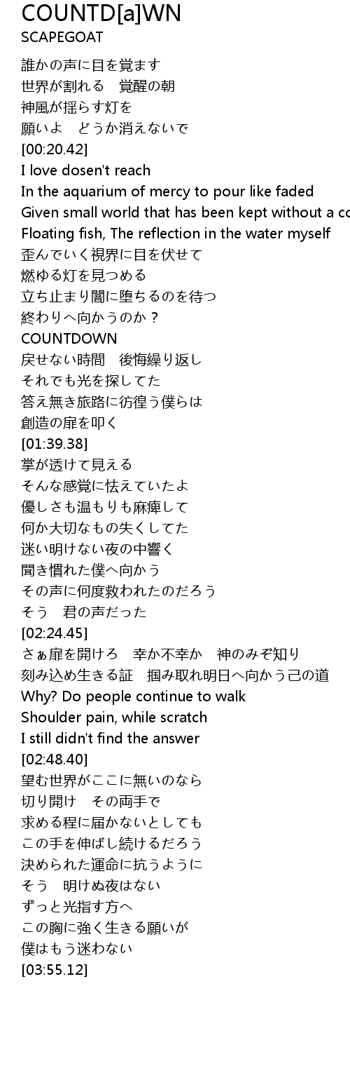 | [02:35.23] | 刻み込め生きる証 掴み取れ明日へ向かう己の道 |