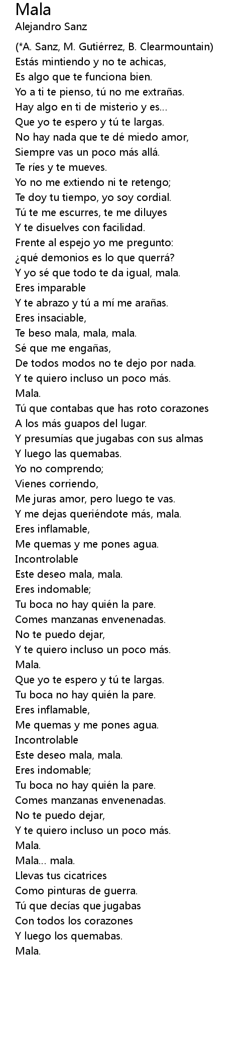 | Y me dejas querie ndote ma s, mala. | |
