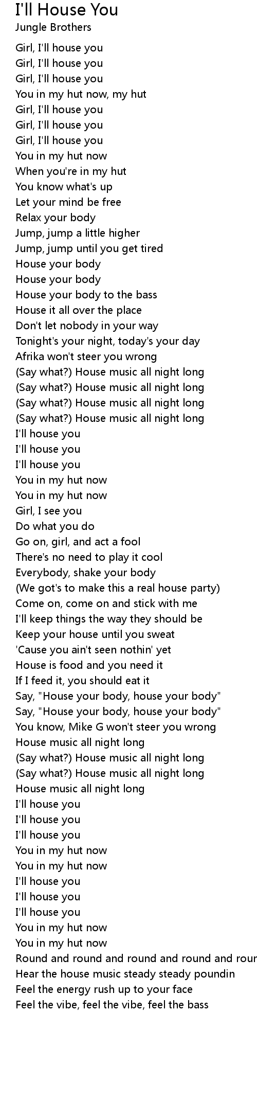 Say, "House your body, house your body" |