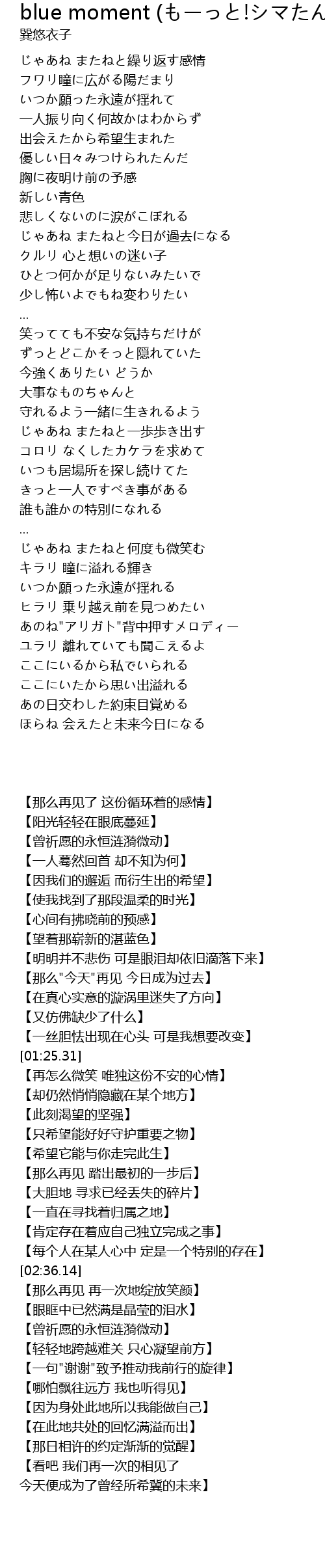 | [03:36.55] | ユラリ 離れていても聞こえるよ |