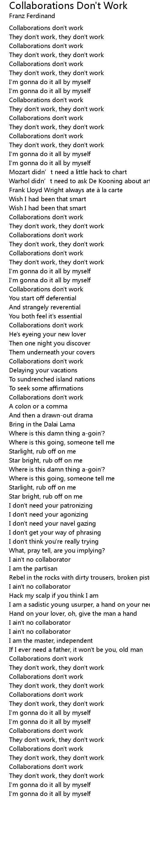 | [02:48.22] | Collaborations don' t work |
