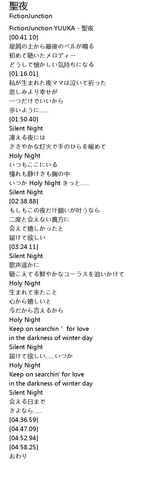 | [00:00.00] | FictionJunction YUUKA - 聖夜 |