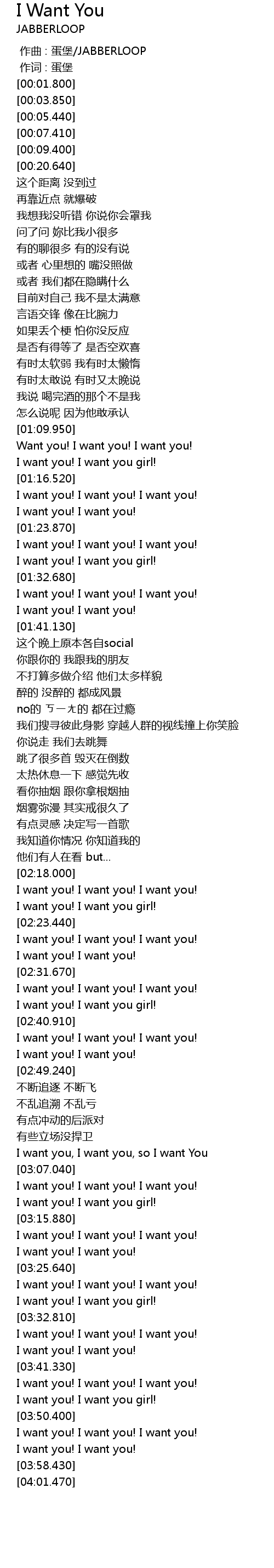 | [03:00.350] | I want you, I want you, so I want You |