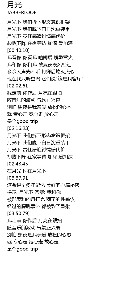 | [03:11.21] | 在月光下 在月光下~~~~~~ |