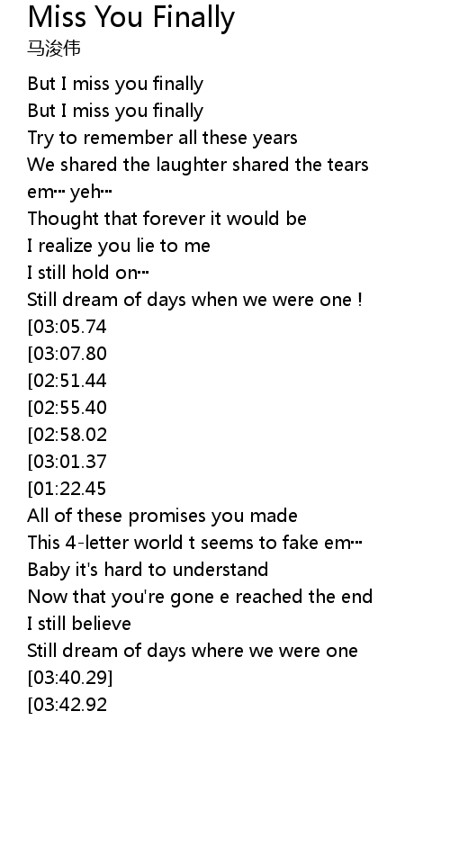 Miss You Finally Lyrics