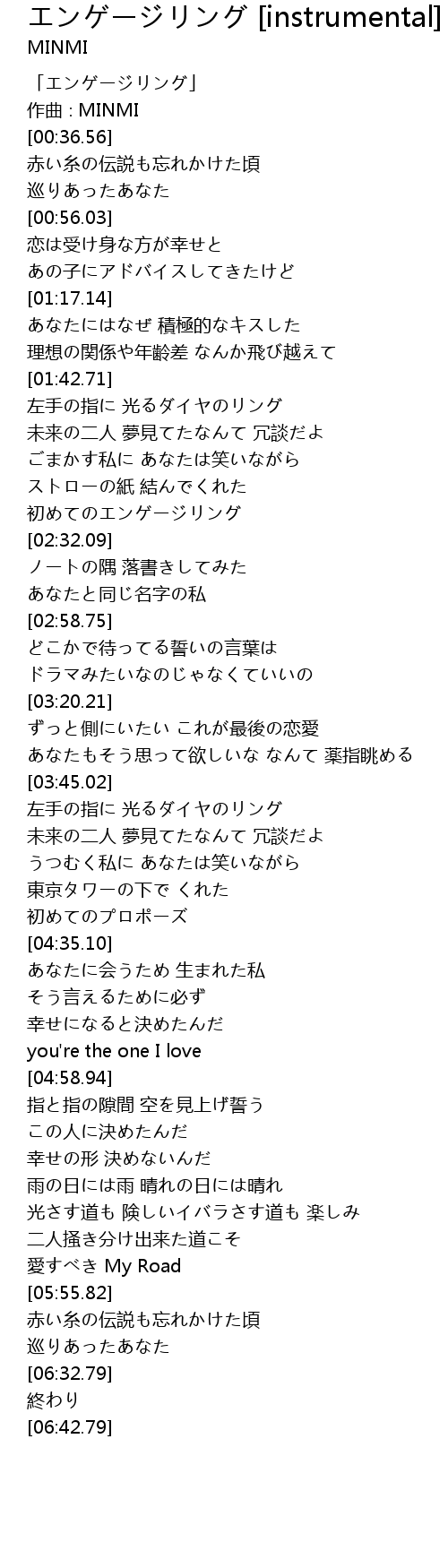 エンゲージリング [instrumental] instrumental Lyrics