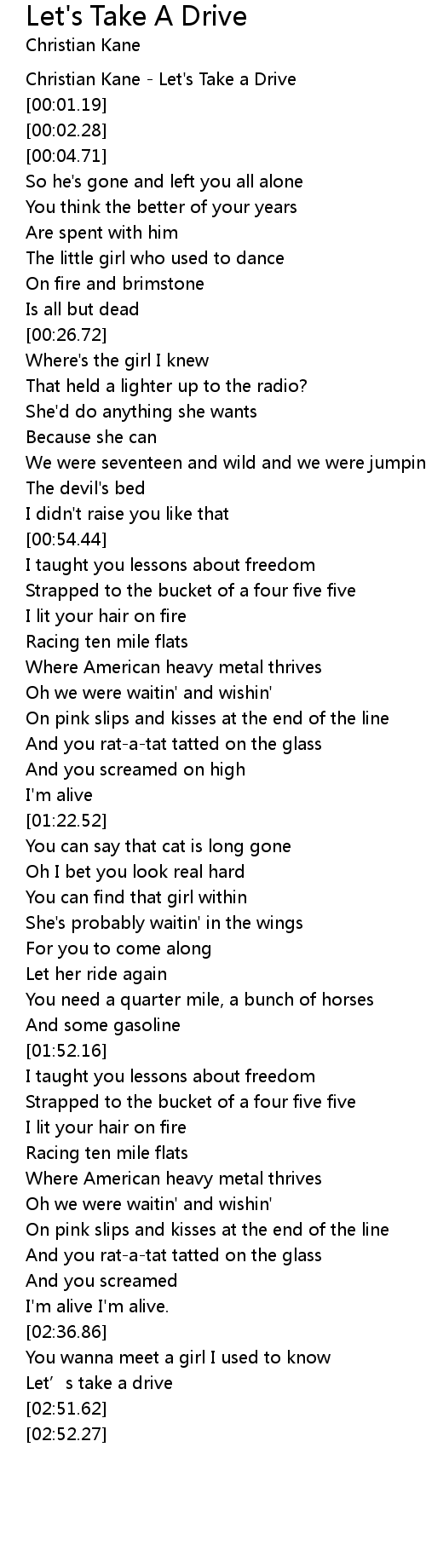 | [00:00.00] | Christian Kane - Let's Take a Drive |