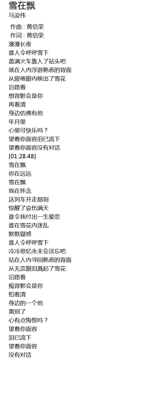 | [00:30.62] | shuí rén lìng hū hū xuě xià |