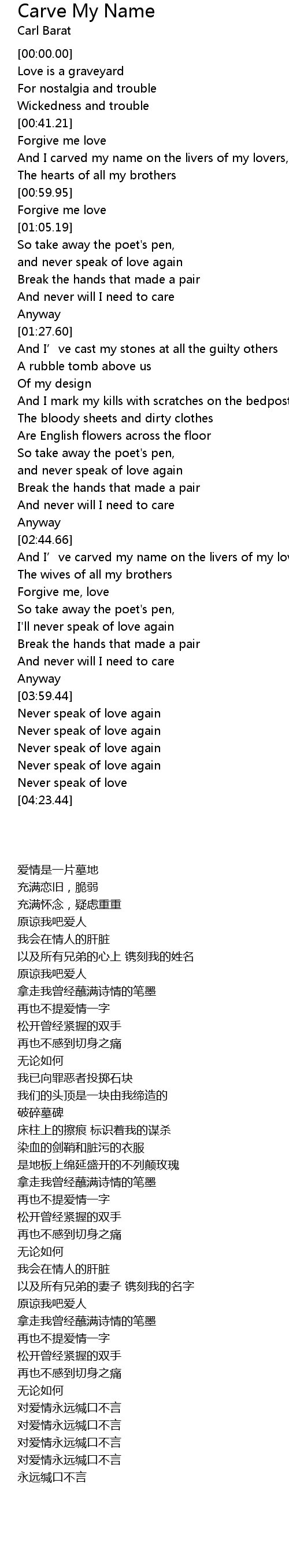 | [03:22.43] | And I' ve carved my name on the livers of my lovers |