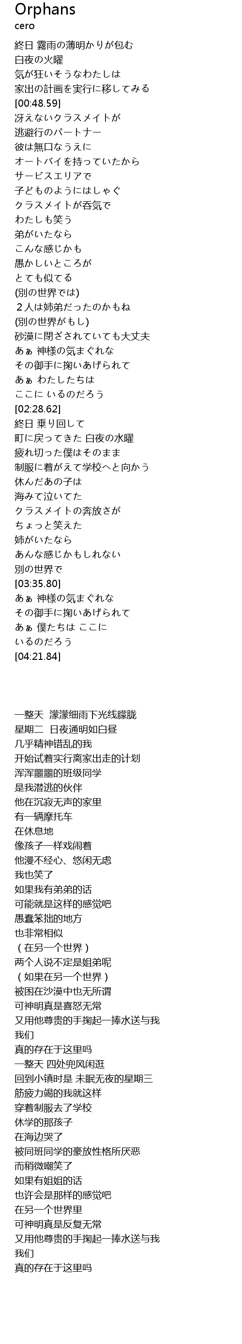 | [01:48.42] | 2人は姉弟だったのかもね |