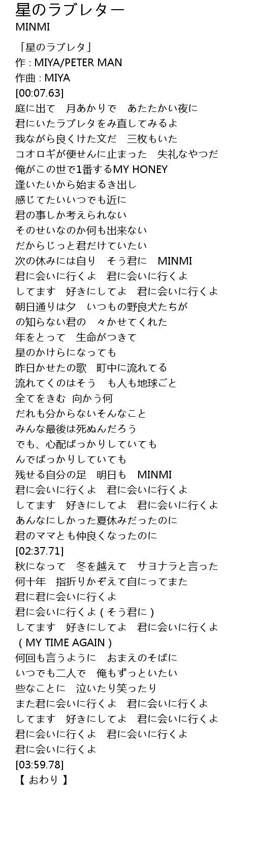 | [00:55.38] | 次の休みには自り そう君に MINMI |