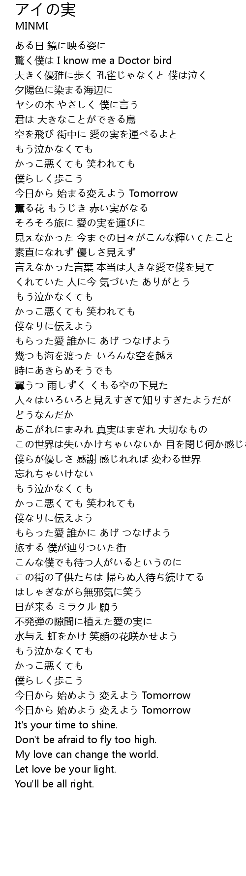 | 見えなかった 今までの日々がこんな輝いてたこと | |