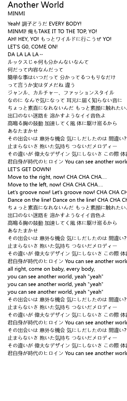| Let' s groove now! Let' s groove now! CHA CHA CHA. | |
