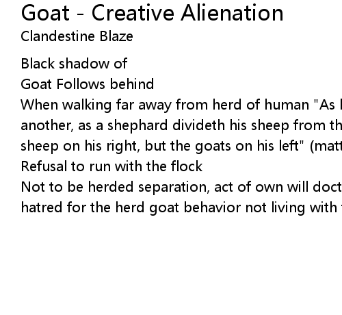 | Not to be herded separation, act of own will doctrine of misanthropy creative hatred for the herd goat behavior not living with the sheep |