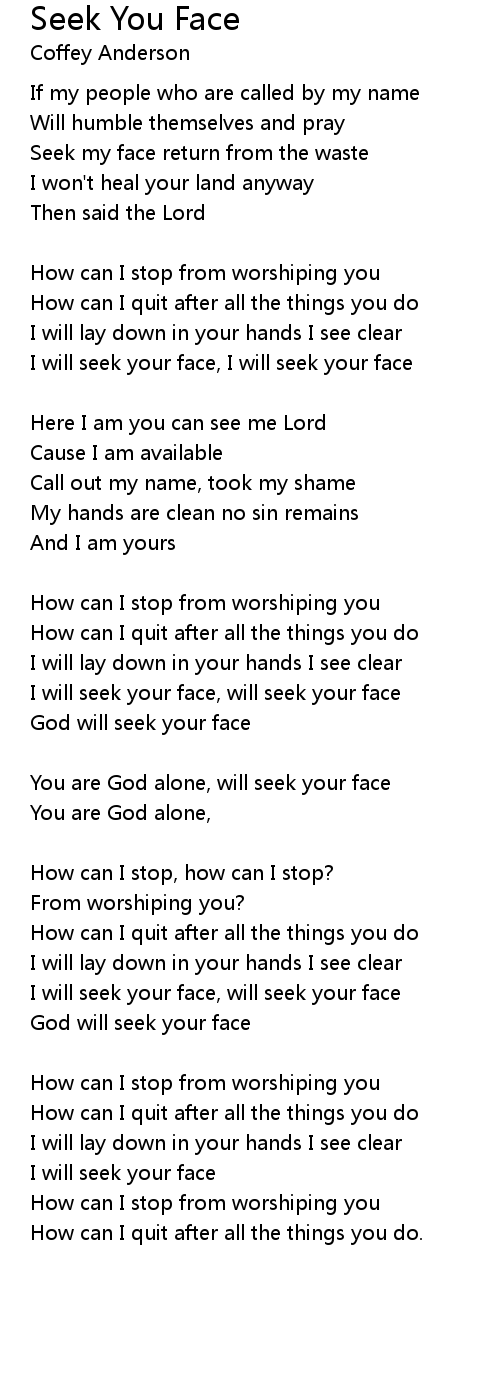 I will seek your face, I will seek your face |