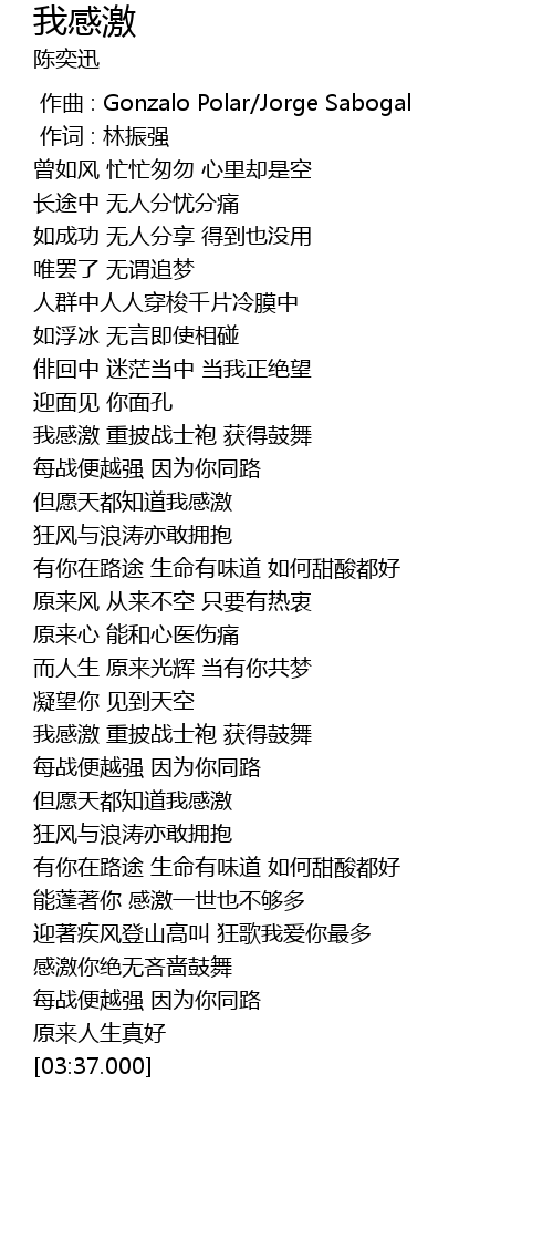 | [03:20.000] | 感激你绝无吝啬鼓舞 |