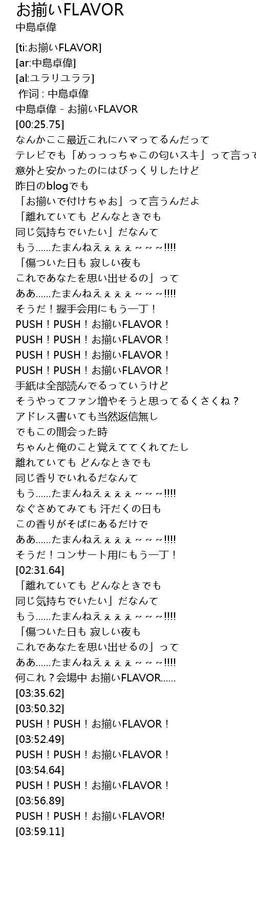 | [03:45.84] | PUSH! PUSH! jian FLAVOR! |