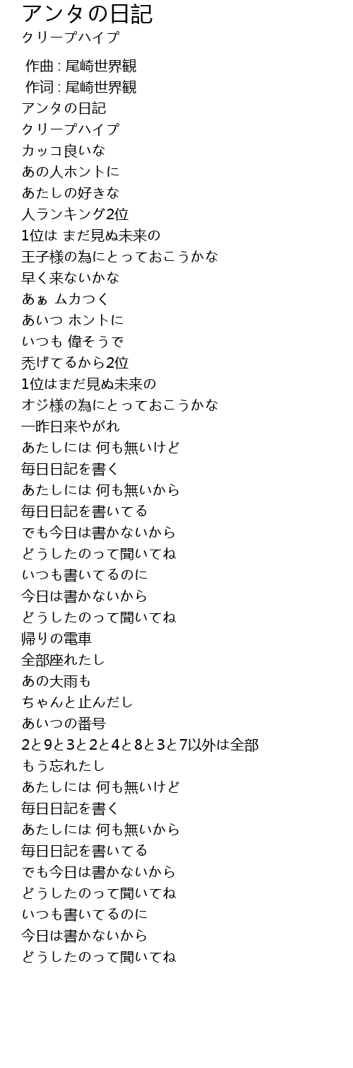 | Song | アンタの日記 |