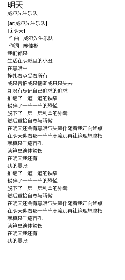 | [00:00.00] | 作曲 : 威尔先生乐队 |