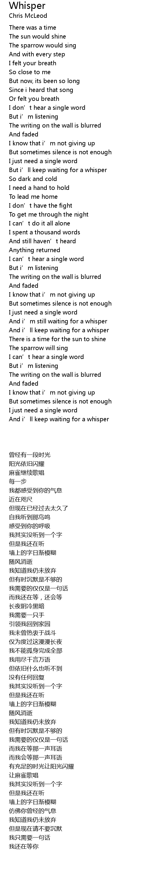 | [02:39.61] | And i’ll keep waiting for a whisper |
