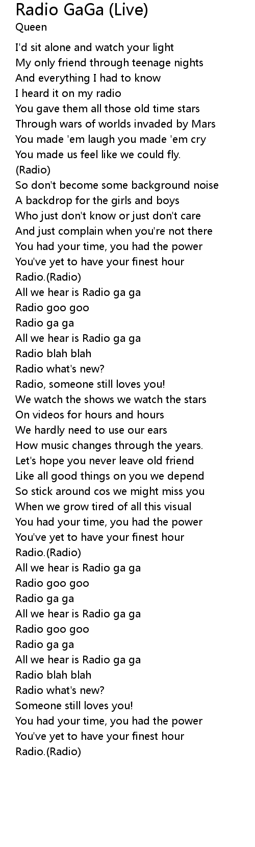 All we hear is Radio ga ga |