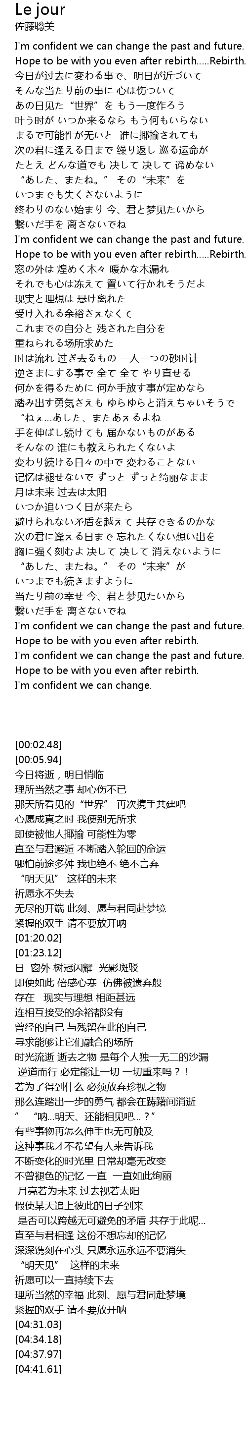 | [01:23.12] | Hope to be with you even after rebirth.. Rebirth. |