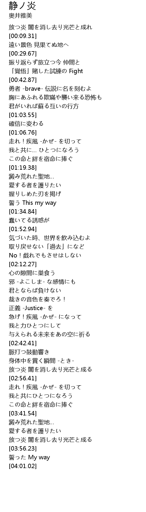 | [00:03.00] | 放つ炎 闇を消し去り光芒と成れ |