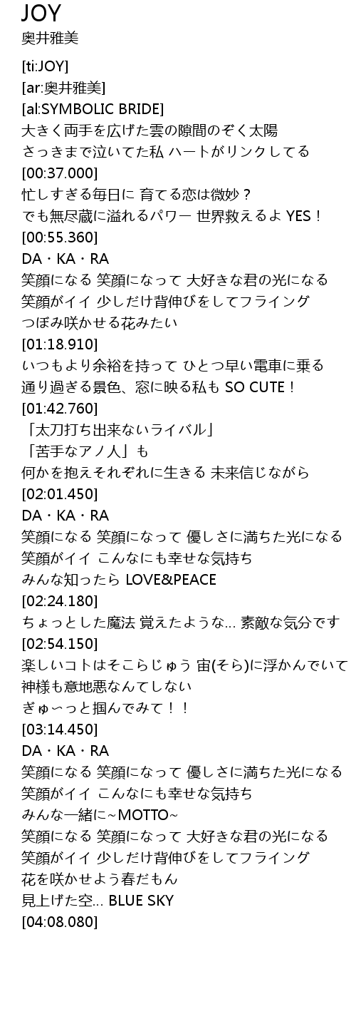 | [02:19.070] | みんな知ったら LOVE&PEACE |