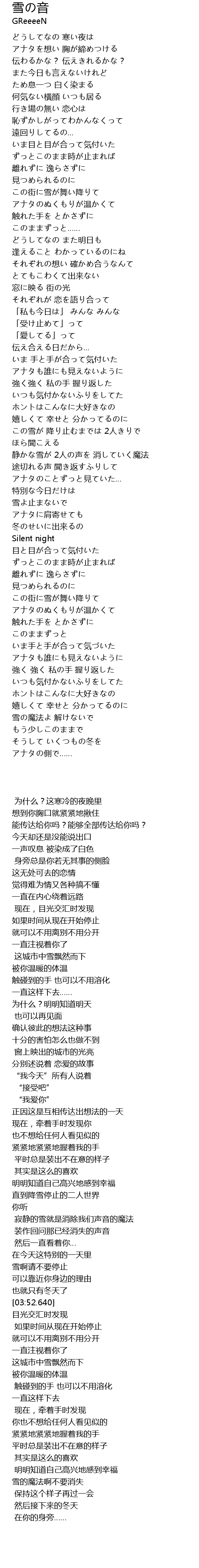 | [03:35.980] | 雪よ止まないで |