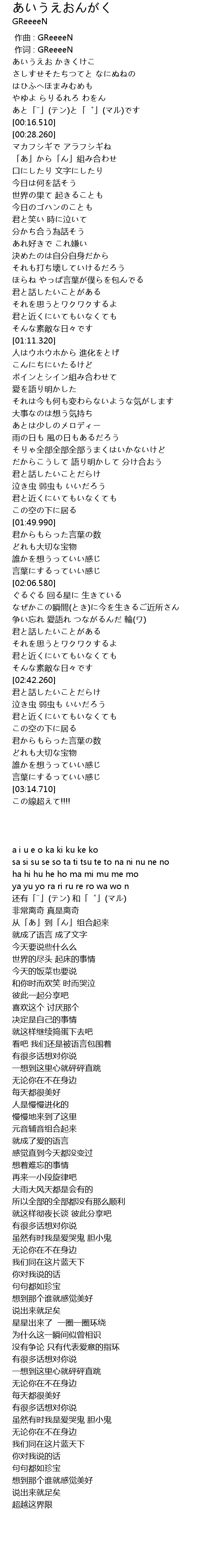 | [00:35.290] | 「あ」から「ん」組み合わせ |