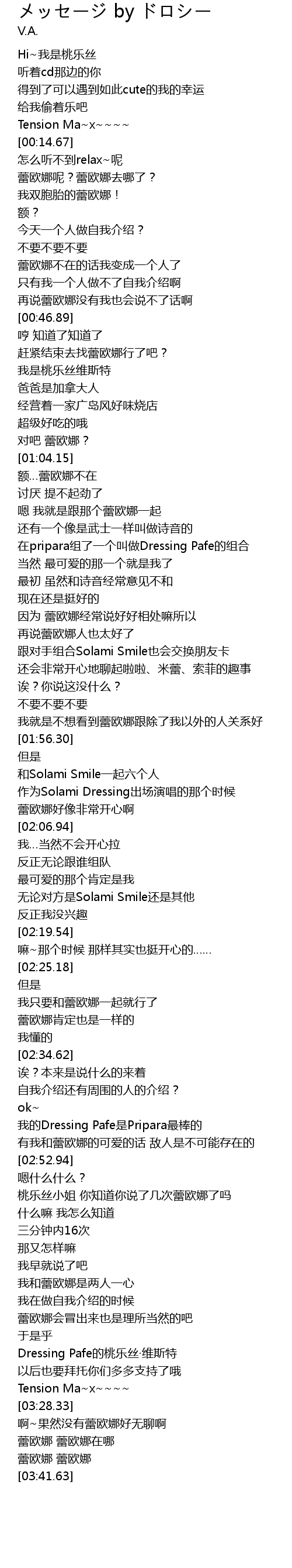 | [02:45.44] | 我的Dressing Pafe是Pripara最棒的 |