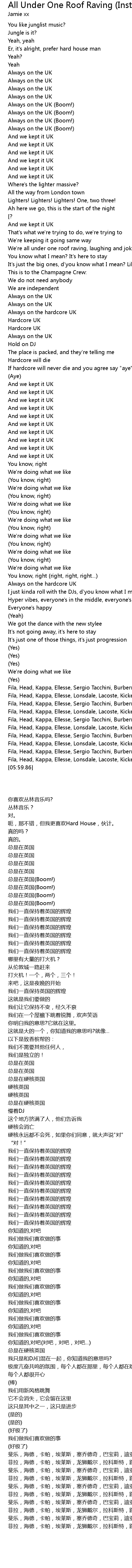 | [02:03.36] | We're all under one roof raving, laughing and joking |