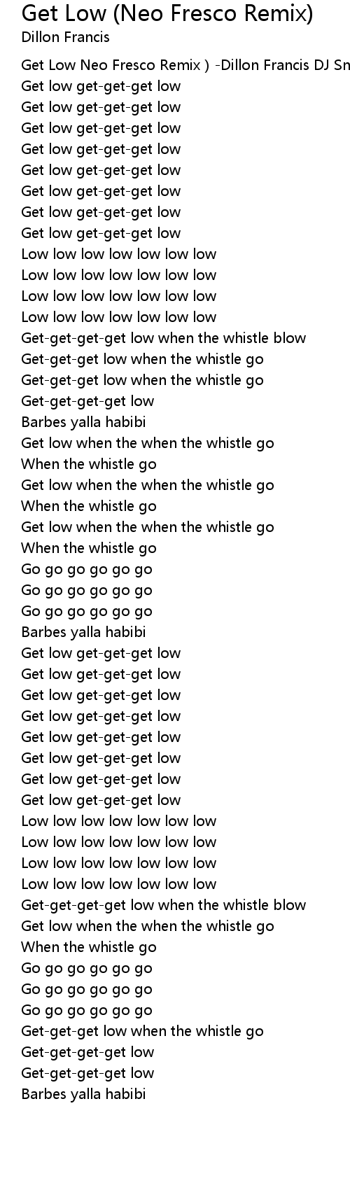 | [00:00.216] | Get Low Neo Fresco Remix Dillon Francis DJ Snake |