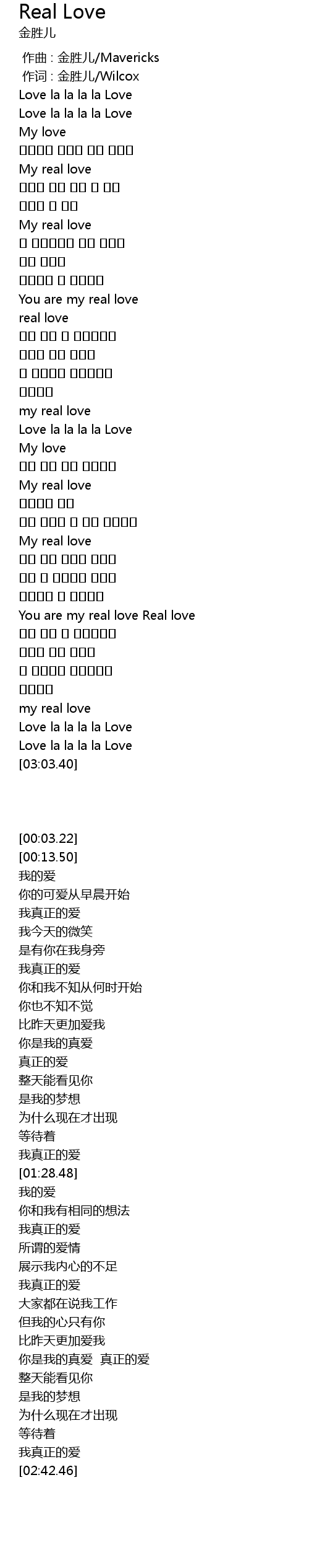 | [00:01.00] | 作词 : 金胜儿/Wilcox |