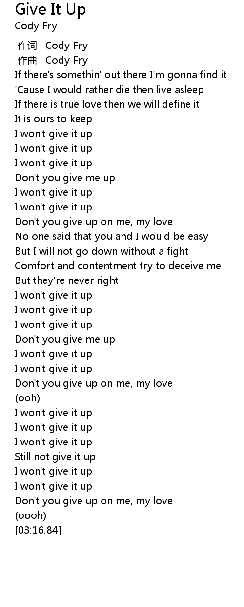 | [00:38.12] | I won't give it up |