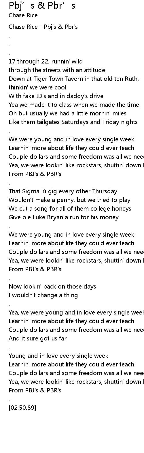 Chase Rice - Pbj's & Pbr's |
