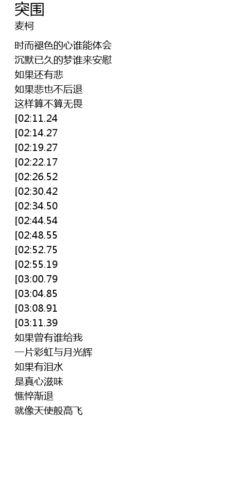| [01:05.01][02:26.52] | 让我打开心扉 |