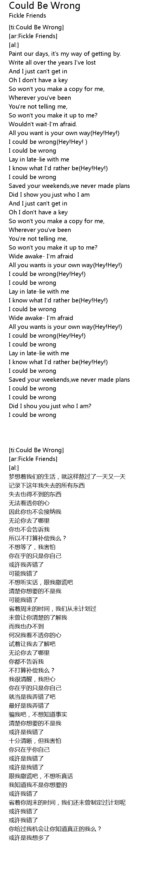 | [01:01.93] | I could be wrong Hey! Hey! |