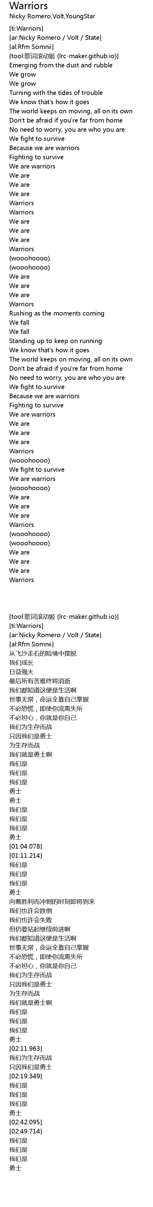 | [02:16.791] | We are warriors |