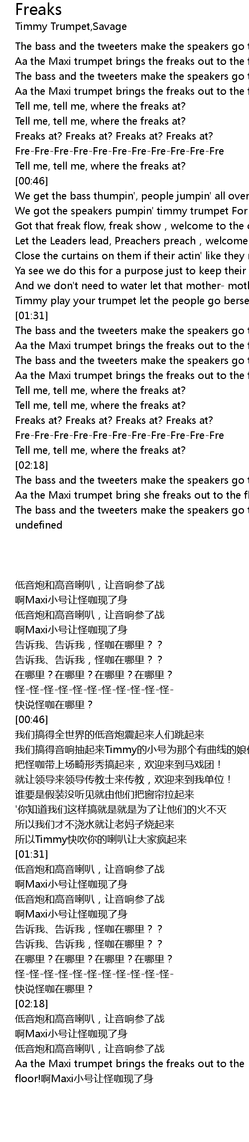 | [00:44] | Tell me, tell me, where the freaks at? |