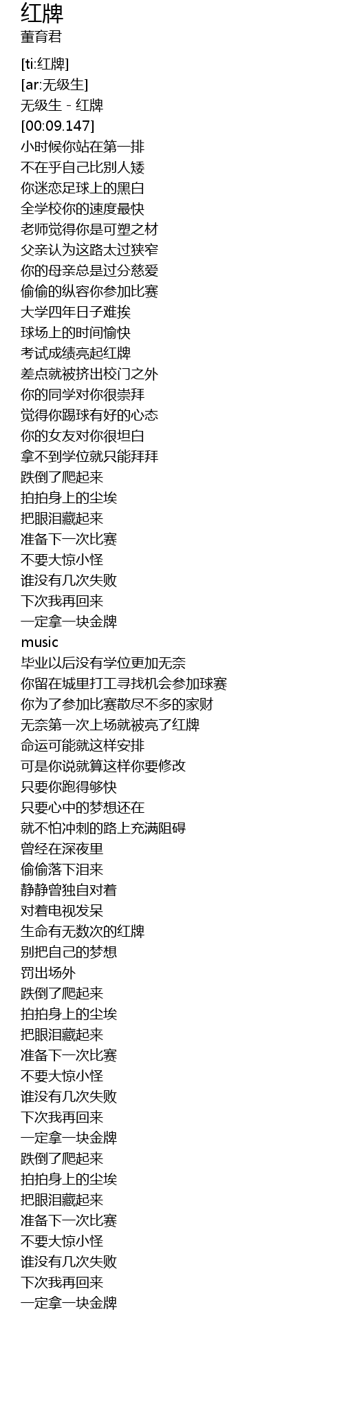 | [02:04.398] | 无奈第一次上场就被亮了红牌 |