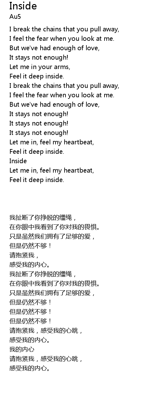 | [03:59.90] | Let me in, feel my heartbeat, |