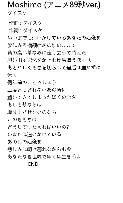 Moshimo 89 miao ver. Lyrics