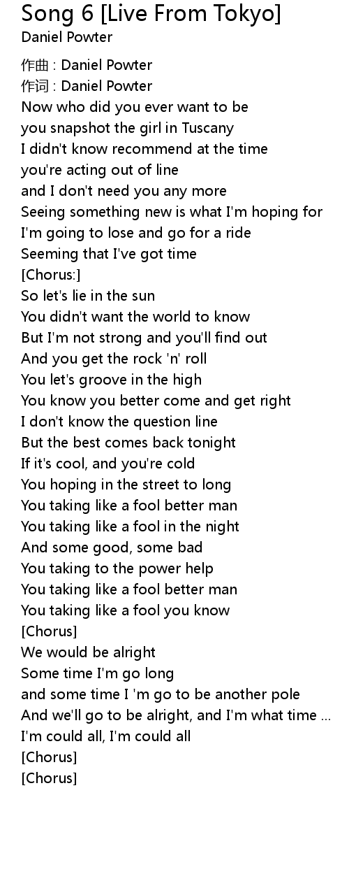 | zuò cí : Daniel Powter | |