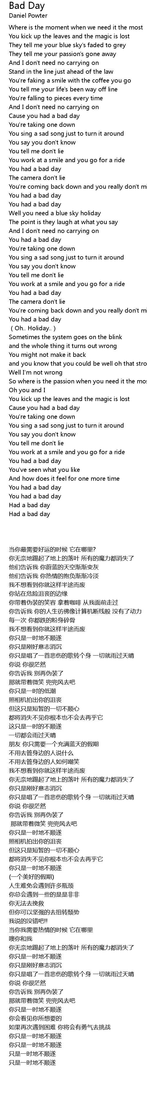 | Song | Bad Day |