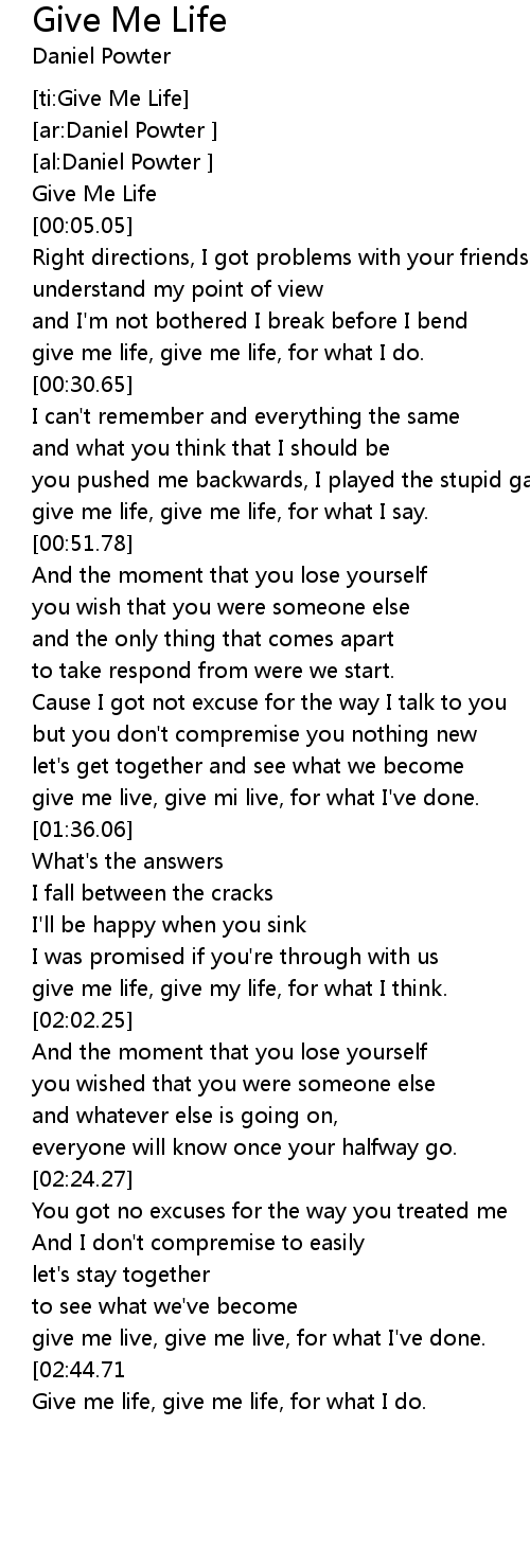 | [03:20.61][02:44.71] | Give Me Life bēn pèi dǎn Daniel Powter |